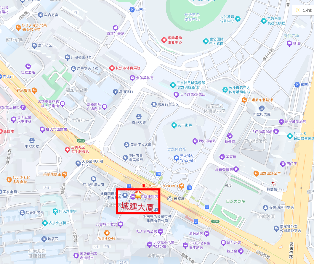 勞動路327號001棟城建大廈地處長沙老牌商業聚集地侯家塘商圈核心位置,緊臨賀龍體育館,交通優勢明顯,依托地鐵1號線和3號線交匯點,面向長沙河東兩條東西向主干道勞動西路、白沙路,形成了集時尚商業、辦公樓宇和生活服務配套為一體的區位中心。其輻射范圍涵蓋周邊市三醫院、省兒童醫院、仰天湖小學、楓樹山小學、中雅培粹學校、雅禮中學、賀龍體育館、白沙古井、天心閣、黃興廣場、南門口步行街等八大人流聚集地。