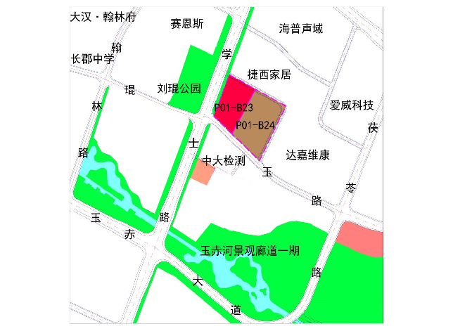 P01-B24:規劃為工業用地(M1),占地面積約27畝,地上共有5棟生產與配套用房(含一棟配電房),總建筑面積約29100m2。