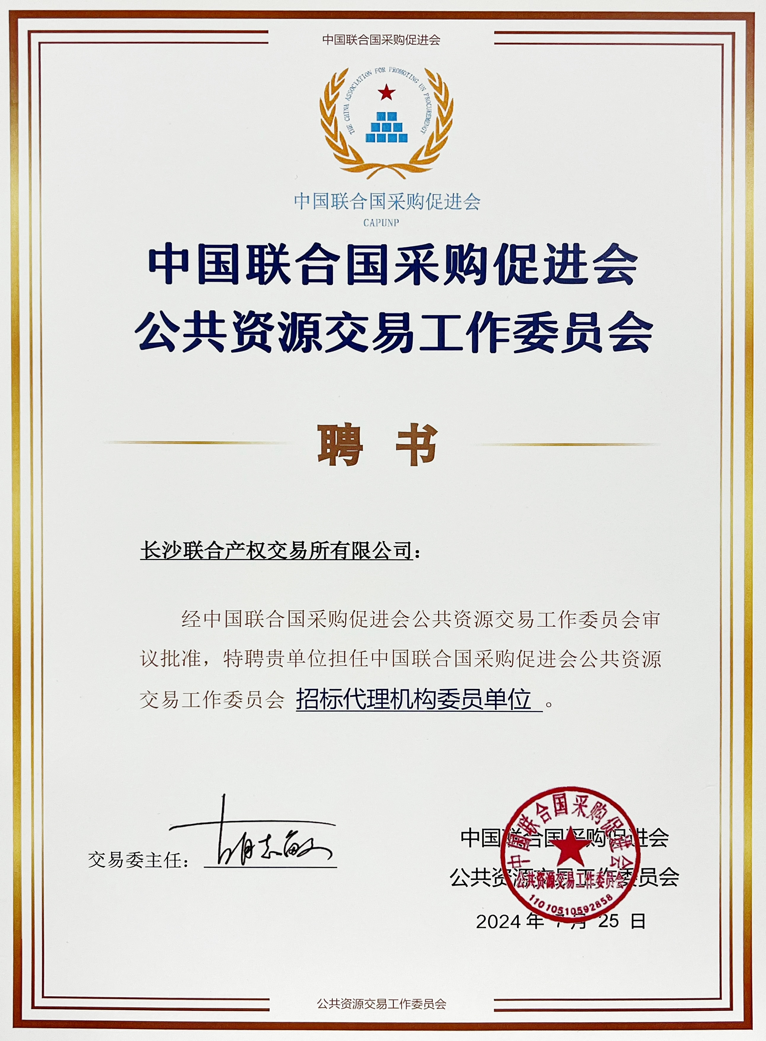 在創新成果展示環節中,長沙聯交所榮獲2023-2024年度公共資源交易優秀招標代理機構。會后,長沙聯交所被中國聯合國采購促進會公共資源交易工作委員會聘為招標代理機構委員單位。