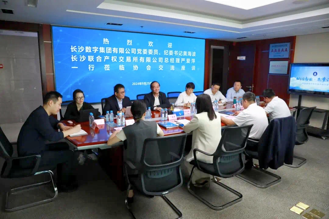 2024年9月25日上午,長沙數字集團有限公司黨委委員、紀委書記黃海波,長沙聯合產權交易所有限公司總經理嚴愛萍一行赴中國企業國有產權交易機構協會(以下簡稱“中國產權協會”)拜訪交流。中國產權協會黨委書記、秘書長夏忠仁熱情接待并組織了交流座談會。