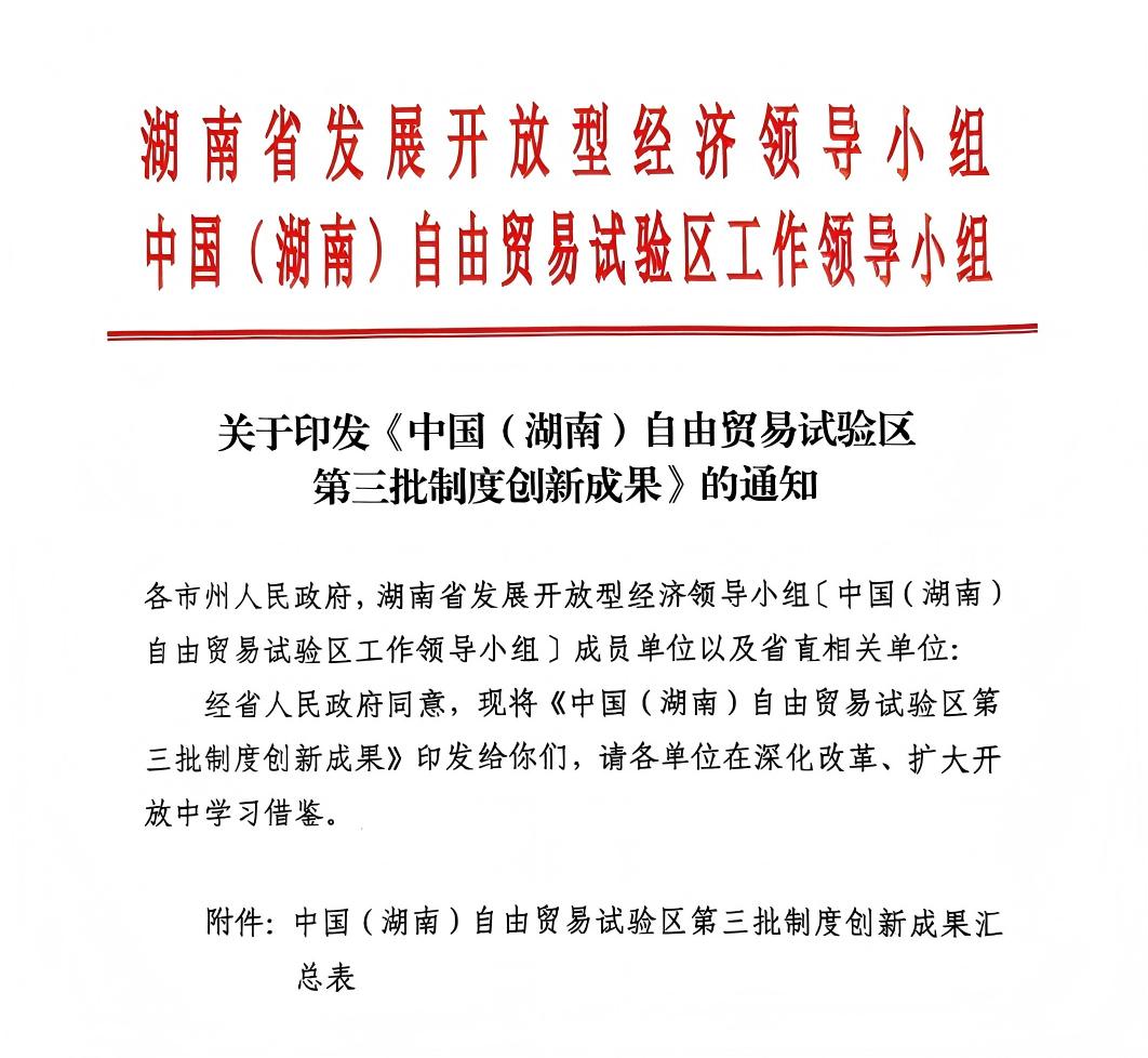 2025年,湖南省發展開放型經濟領導小組、中國(湖南)自由貿易試驗區工作領導小組印發通知,發布了《中國(湖南)自由貿易試驗區第三批制度創新成果》,由省法院、省發改委、省司法廳牽頭指導,中國(湖南)自由貿易試驗區長沙片區、長沙中院、長沙市發改委聯合推動并選定長沙聯合產權交易所組織實施的“工程機械法務機快速處置新模式”入選該批制度創新成果,首創性為“全國首創”。